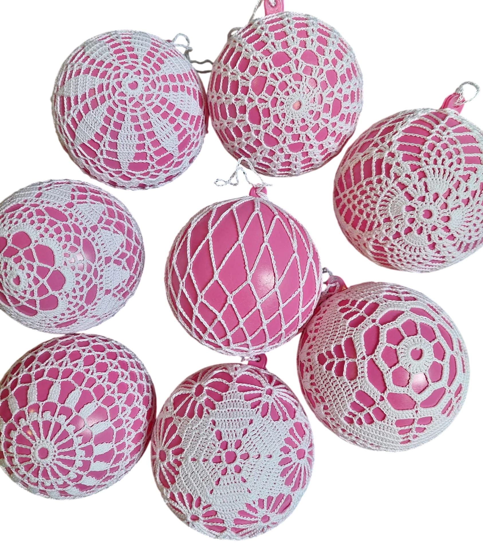 Set Gehäkelte Weihnachtskugeln Rosa