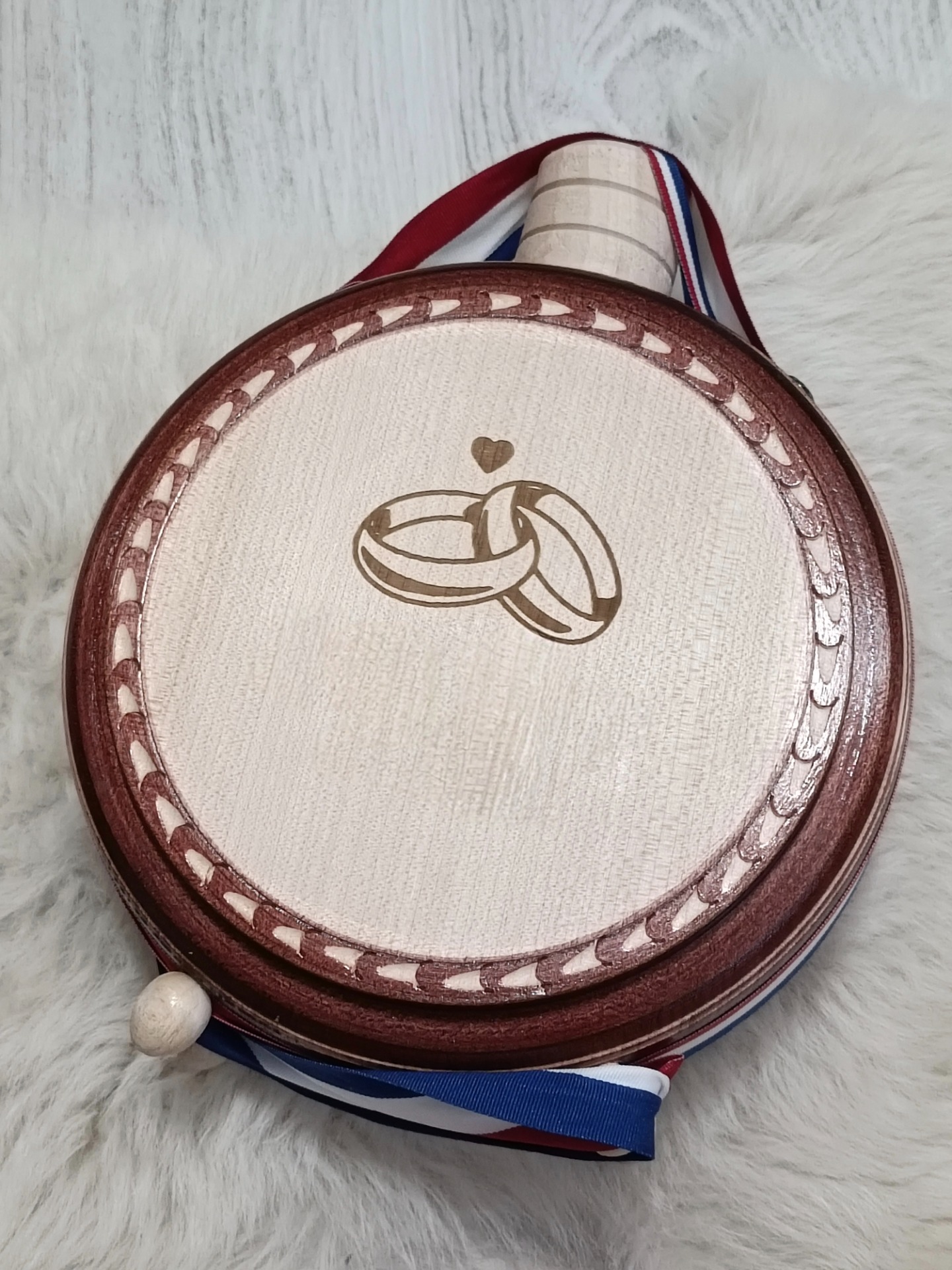 Feldflasche aus Holz, die auf keiner kroatischen Hochzeit fehlen darf. Geschenkidee mit eingravierten Namen, Datum oder Text nach Wunsch. Eine Seite zeigt Eheringe und die gewünschten Namen oder Text, die andere Seite das kroatische Wappen oder ein anderes gewünschtes Motiv. Beidseitige Gravur ist möglich; der Preis richtet sich dann danach. Lieferzeit ca. ein Monat. Einheitsgröße. Versandkosten sind nicht im Preis enthalten.