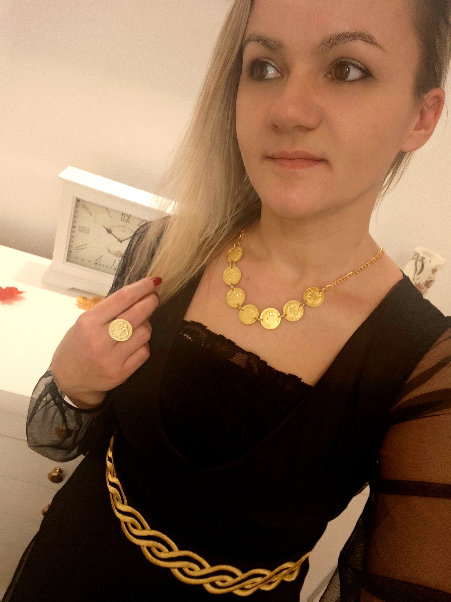 Halskette mit 7 Dukaten. Die Dukaten sind nicht echt. Einheitsgröße. Preis ohne Versandkosten.