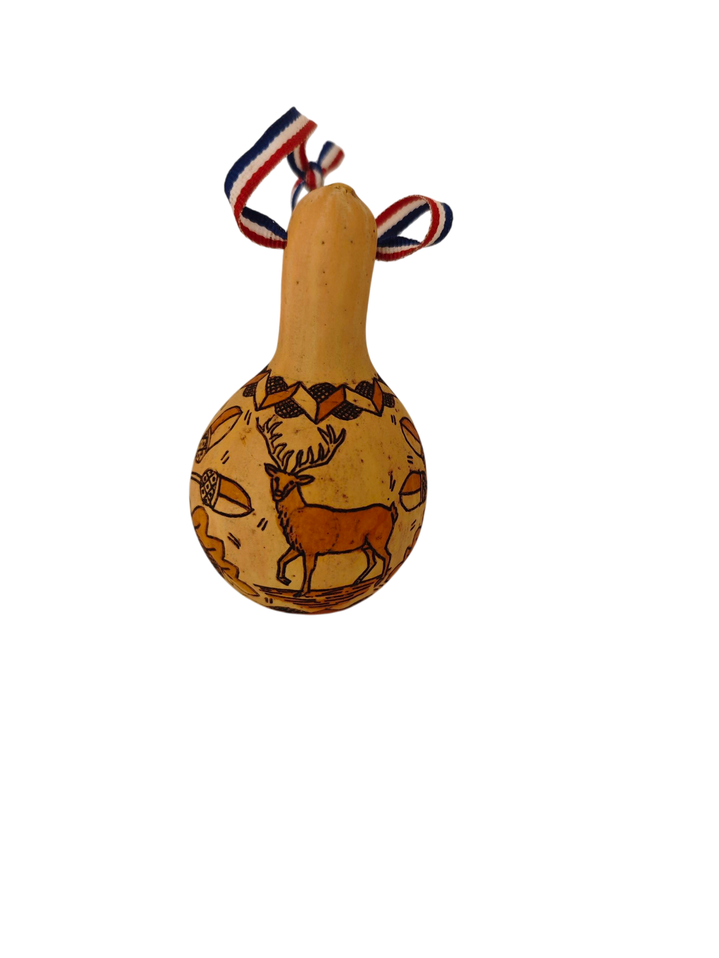 Diese handgefertigte, bemalene Kalebasse kommt direkt aus Slawonien, wo sie schon im 18. Jh. entstanden ist bzw. im Osten von Kroatien. Die traditionelle Technik der Verarbeitung dieser kleinen Kürbisse wurde als Kulturerbe anerkannt. Meist findet sie im kroatischen Zuhause als Dekoration oder als Anhänger im Auto ihren Platz. Größe ca. 8 cm.