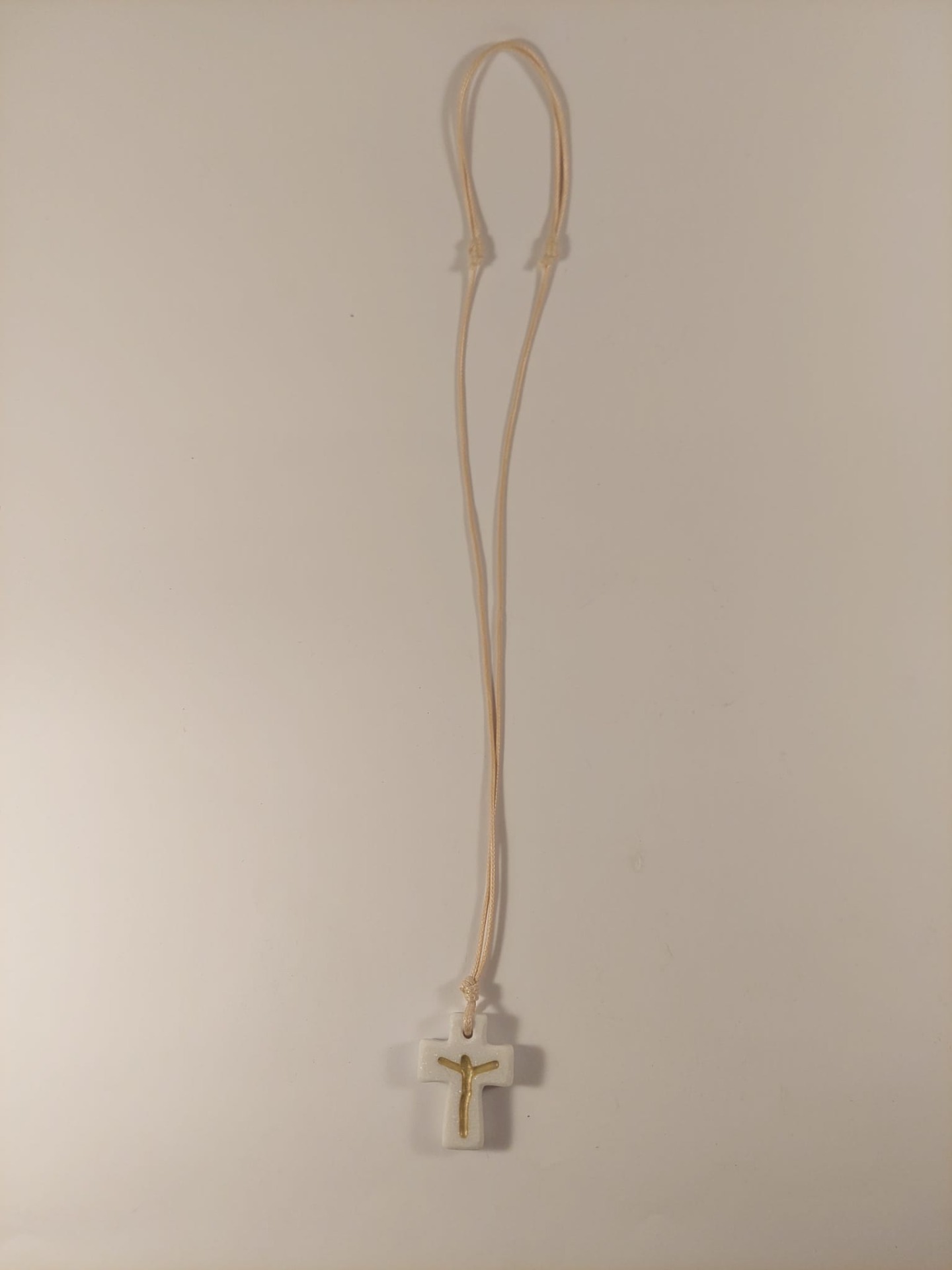 Lančić i privjesak od bračkog kamena. Isus pozlaćen. Dimenzije: 4x3x1 cm. Napomena: Radi opsežnog rada potrebnog za ovaj proizvod, isporuka se čeka oko mjesec dana. Poštarina nije u cijeni.