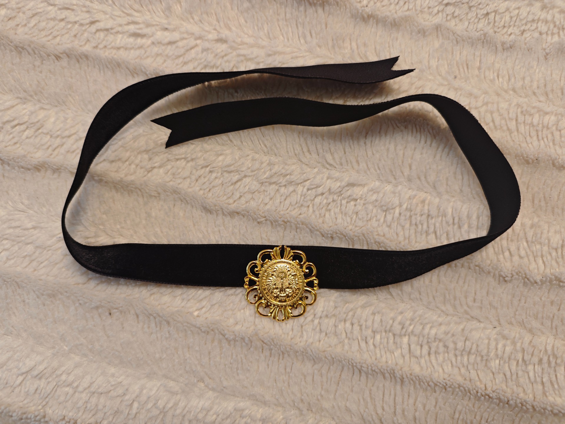Ogrlica na plišu s dukatom u obliku medaljona. Dukati nisu pravi. Univerzalna veličina. Cijena bez dostave.