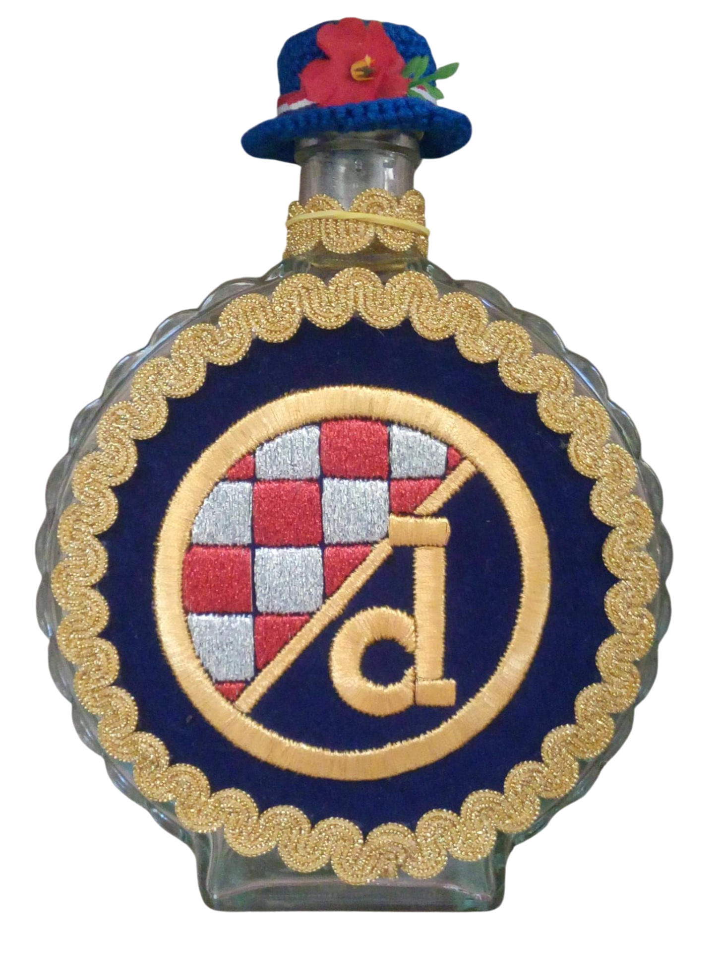 Boca ukrašena zlatovezom i kapom tradicionalne nošnje iz Slavonije. Moguće više motiva ili tekst po želji, koje ćete nam napisati u formularu za narudžbu.