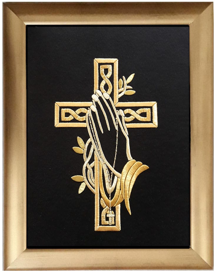 Slika izrađena tradicionalnom tehnikom zlatoveza preko kartona, dakle isključivo ručni rad - nije mašinski proizvod. Dimenzije ca. 35 x 40 cm. Poštarina nije u cijeni.
