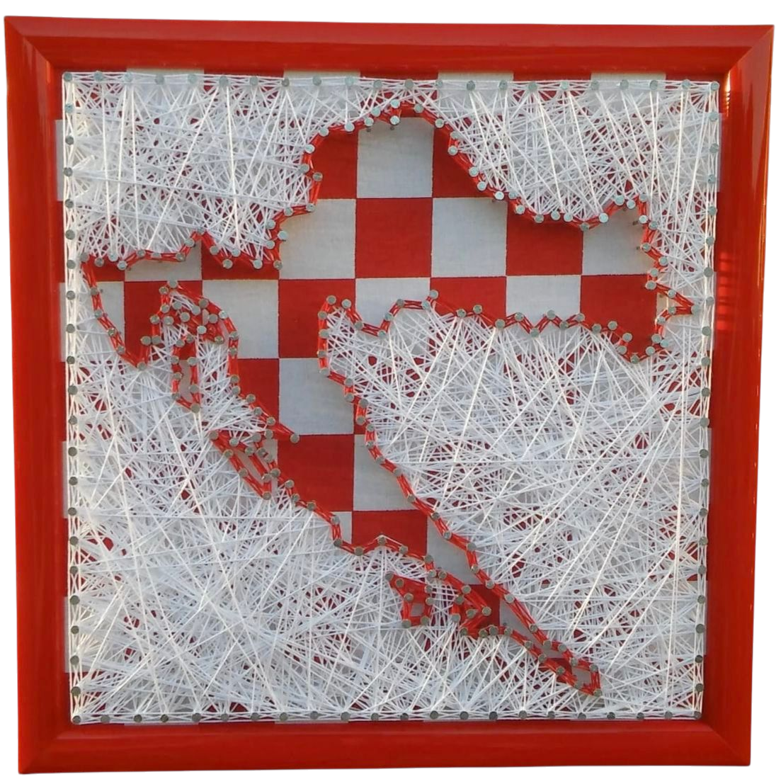 Slika izrađena koncem odnosno tehnikom string art. Dimenzije: 26x26 cm. Dostava se čeka oko mjesec dana. Poštarina nije u cijeni.