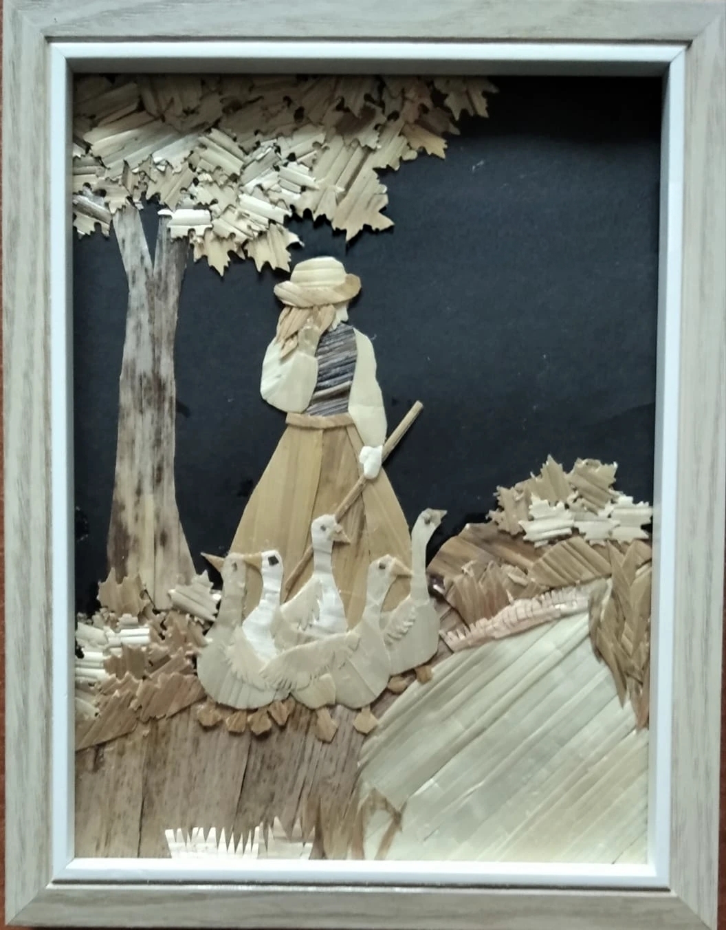 Handgemachtes Bild aus Stroh. Der Bilderrahmen wird eventuell nicht wie abgebildet sein. Größe: 15 x 20 cm.