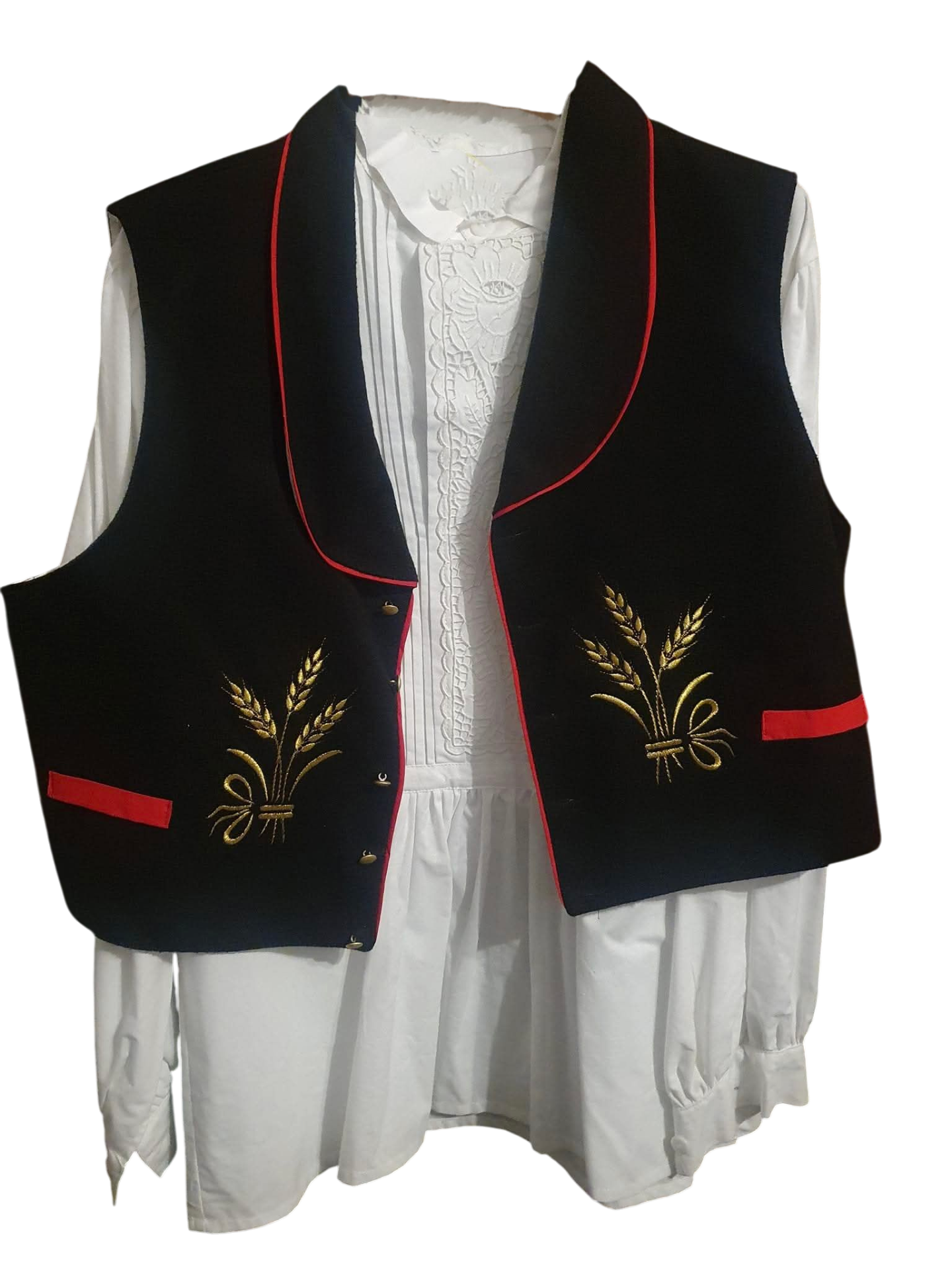 Veste mit Goldstickerei für Männer. Teil der Tracht in Slawonien. Allerdings wird sie oft mit modernen Blusen kombiniert, sowohl von Männern als auch von Frauen. Jede Größe möglich, auch für Kinder, deshalb variert der angeführte Preis. Bitte die gewünschte Größe während der Bestellung anführen. Preis ohne Versandkosten.